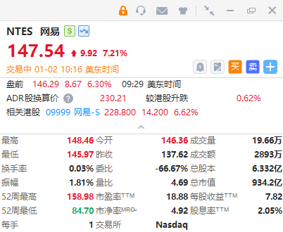 网易涨超7%。消息面上,近日,网易旗下《燕云十六声》周年版本“饮马渡秋水”正式上线,并且登顶iOS国区游戏畅销榜。