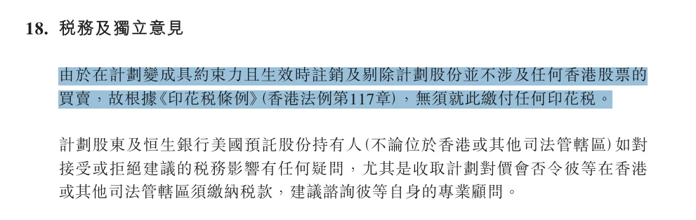 核心原因在于,私有化股份注销通过中央结算及交收系统(CCASS)自动完成,现金对价由要约人直接存入股东证券账户,无需股东主动卖出或通过经纪进行交易,不涉及联交所正常买卖环节,因此不产生市场交易相关费用 —— 这类费用仅适用于二级市场常规交易场景。