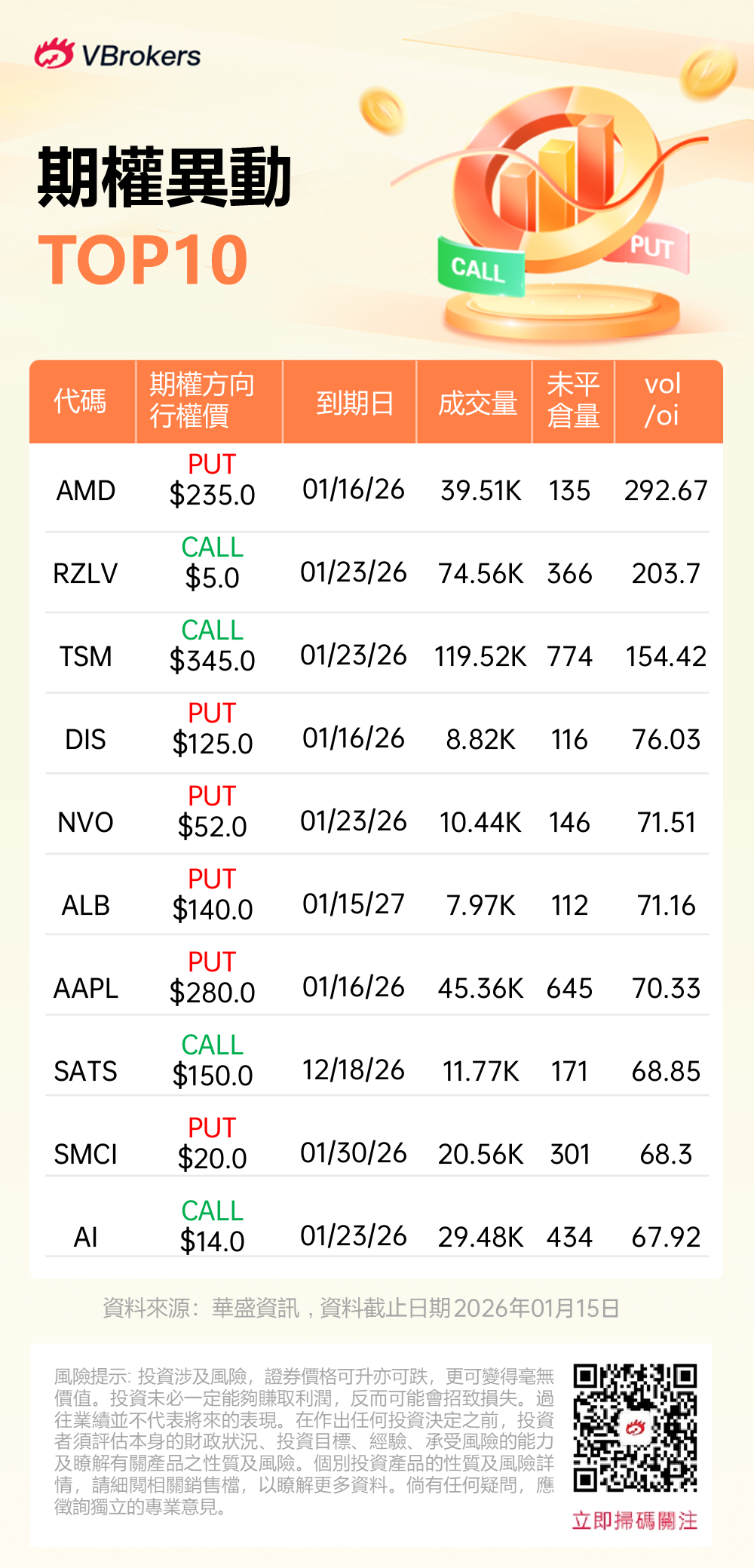 Vol/OI 异动榜(2026.01.15) |