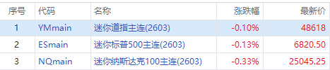 美欧因格陵兰岛归属争端升级,美股本周大幅下跌;截至发稿,三大股指期货再度下挫,纳指期货 $NQmain 跌0.33%,标普500期货 $ESmain 跌0.13%,道指期货 $YMmain 跌0.10%。