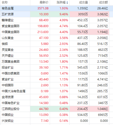 港股有色金属股涨幅居前,五矿资源涨近9%,赤峰黄金涨超6%,紫金黄金国际、赣锋锂业涨近5%,山东黄金涨近4%。