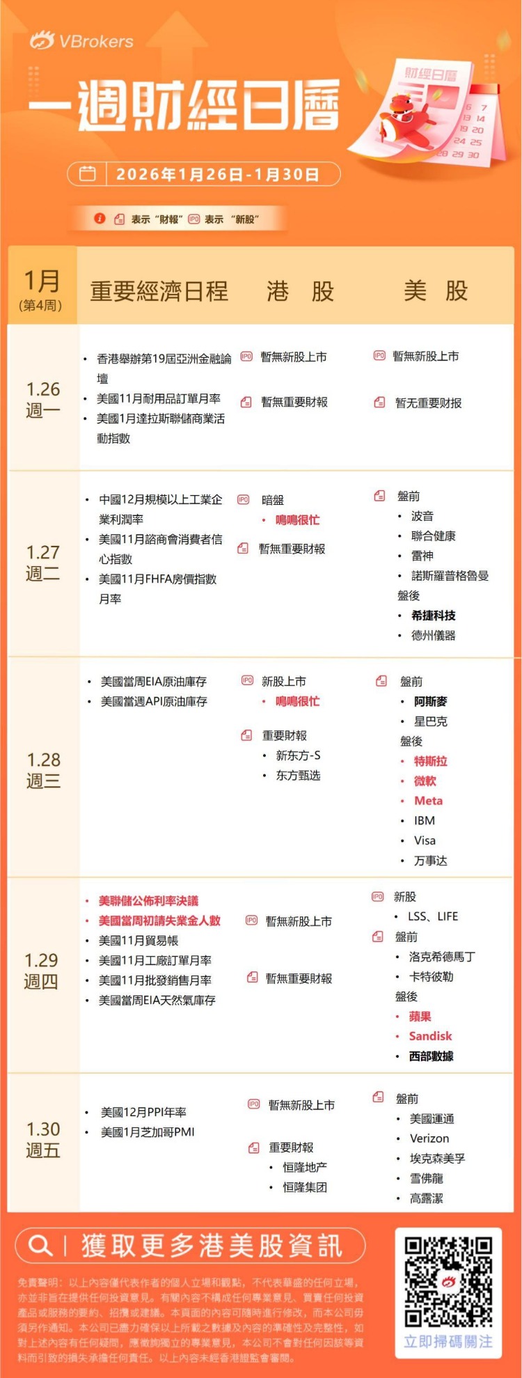编者按:美股超级重磅周来袭!美联储将公布利率决议,市场普遍预计“按兵不动”;明星股财报密集发布,下周特斯拉、苹果、Sandisk等将发财报;孖展倍数超1500倍!鸣鸣很忙预计下周三上市>>