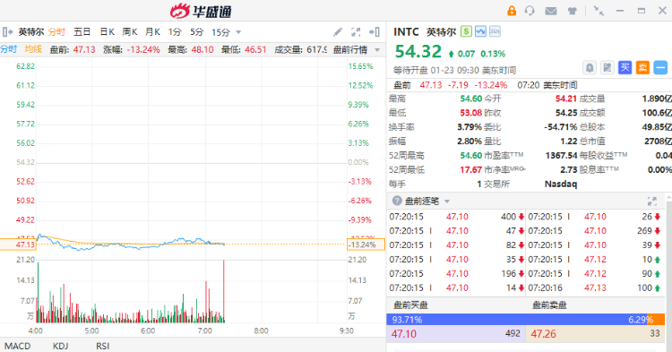 - 英特尔盘前大跌13%!Q4业绩超预期但指引逊色