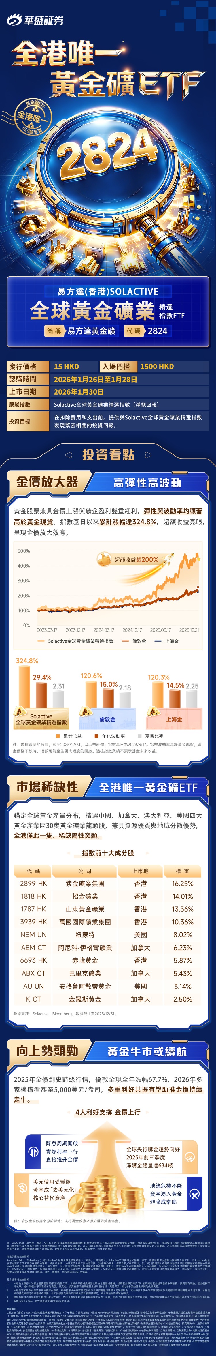 华盛资讯1月26日讯,易方达黄金矿 ETF $02824.HK 开启认购!入场门槛为1500港元,该ETF有何亮点?具体如下: