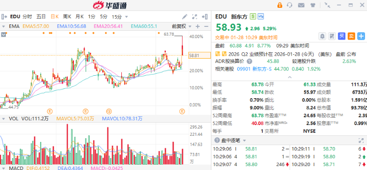 新东方发布2026财年二季度未经审核财务业绩,报告期内,新东方实现净营收11.91亿美元,同比上升14.7%;经营利润6630万美元,同比上升244.4%;股东应占净利润4550万美元,同比上升42.3%。