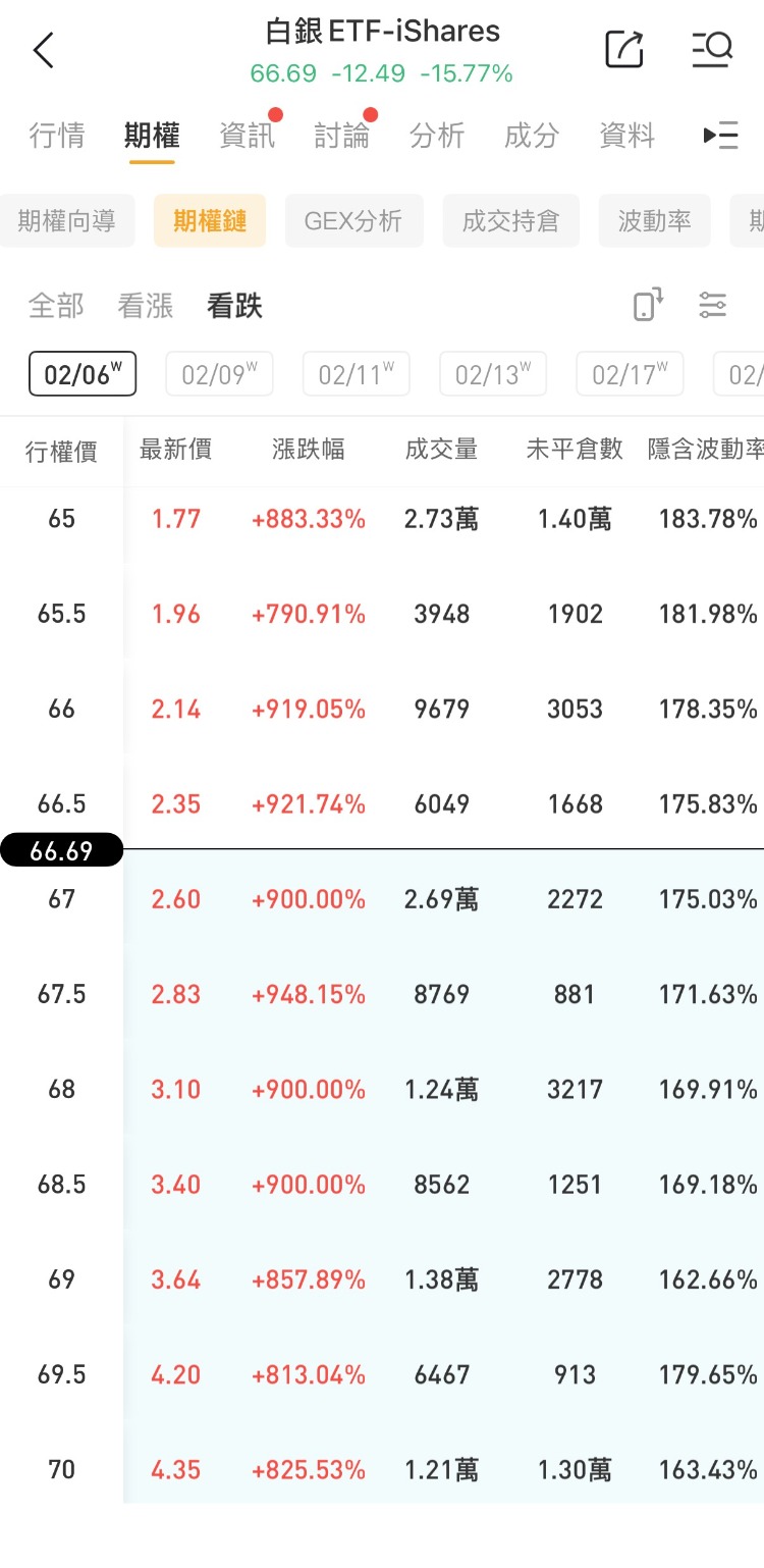 其中,现货白银隔夜暴跌超17%,金价跌近4%,其中白银ETF $SLV 大跌超15%,其期权成交活跃,多张Put单暴涨900%。截至发稿,金银价有小幅反弹。
