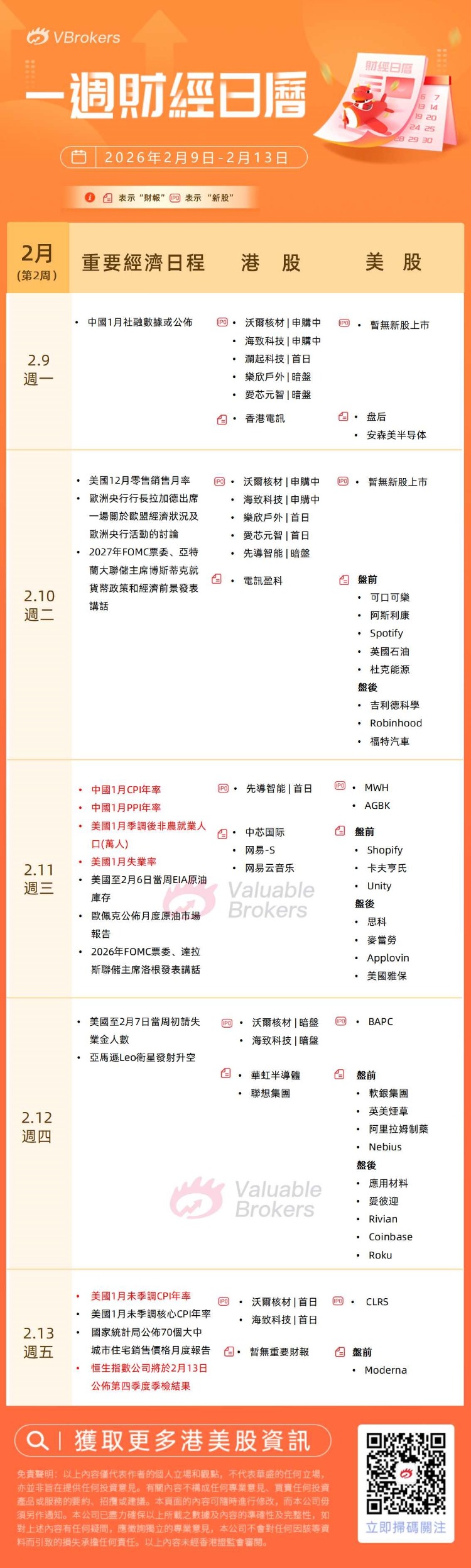 此外,恒生指数公司将于 2 月 13 日公布第四季度季检结果,投资者需重点关注标的纳入与剔除情况。