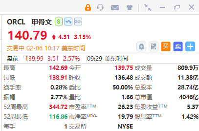 甲骨文涨3.1%,芯片设备供应商应用材料涨4.7%、拉姆研究涨5.1%。