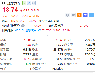 华盛资讯2月6日讯,热门中概股集体上扬,新能源车企领涨,蔚来大涨近9%,1亿次换电今日达成;