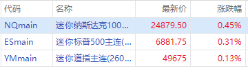 美股三大期指盘前齐涨,纳指期货 $NQmain 涨0.45%,标普500期货 $ESmain 涨0.31%,道指期货 $YMmain 涨0.13%