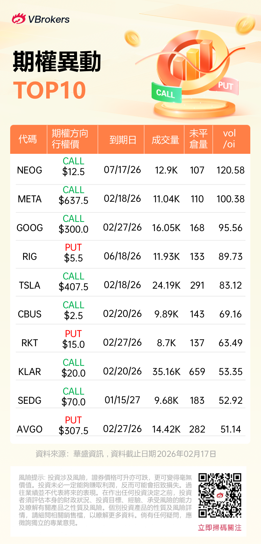 Vol/OI 异动榜(2026.02.17) |