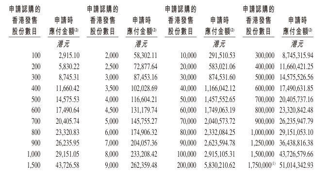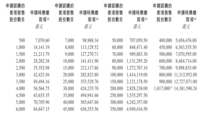 - 发售价格:最高发售价(可作出发售价下调)每股14港元,每手500股股,一手入场费7070.60港元