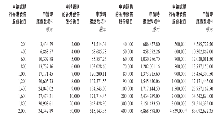 - 发售价格:每股发售价15.36港元-17港元,每手200股,一手入场费3434.29港元