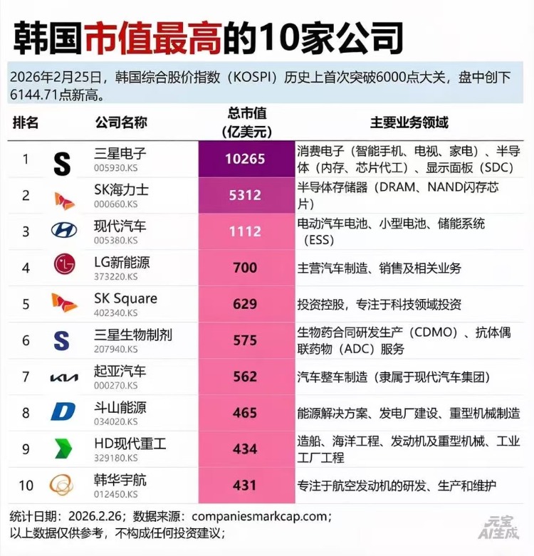 华盛资讯2月27日讯,日韩股市近期持续飙涨!韩国综合股价指数于26日再度大涨近4%,盘中一度创下6313点历史新高,今年以来累涨超44%,晋级为全球第九大股市;27日虽小幅调整,但整体仍维持在6000点上方。日本股市也同样表现强劲,日经225上破59000点大关,今年以来累计涨幅超16%,已是连续第四年大幅上涨。