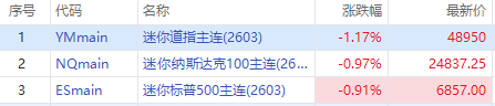 美国1月PPI年率 2.9%超预期,美伊下周继续谈判,油价上涨3%,金银价格走高;美股三大期指跌势扩大,纳指期货 $NQmain 跌0.97%,标普500期货 $ESmain 跌0.92%,道指期货 $YMmain 跌1.11%。
