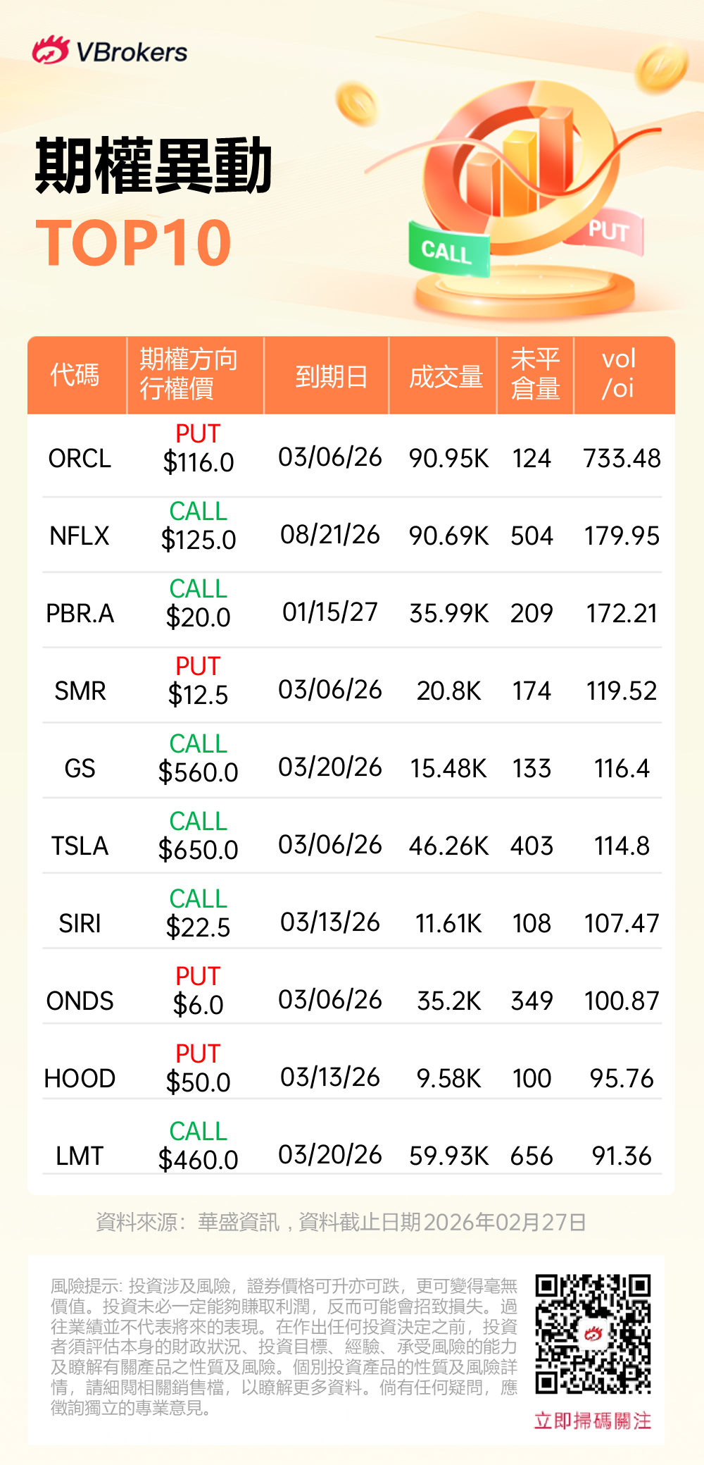 Vol/OI 异动榜(2026.02.27) |