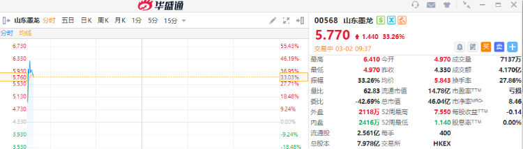 华盛资讯3月2日讯,港股有色金属、石油、海运股盘初走高!赤峰黄金涨近6%,山东黄金涨超3%,紫金矿业涨近3%;山东墨龙飙涨超33%,中石化油服涨10%,“三桶油”中国海洋石油涨超5%,中国石油股份涨近4%,中国石油化工股份涨近3%;中远海能涨超7%。