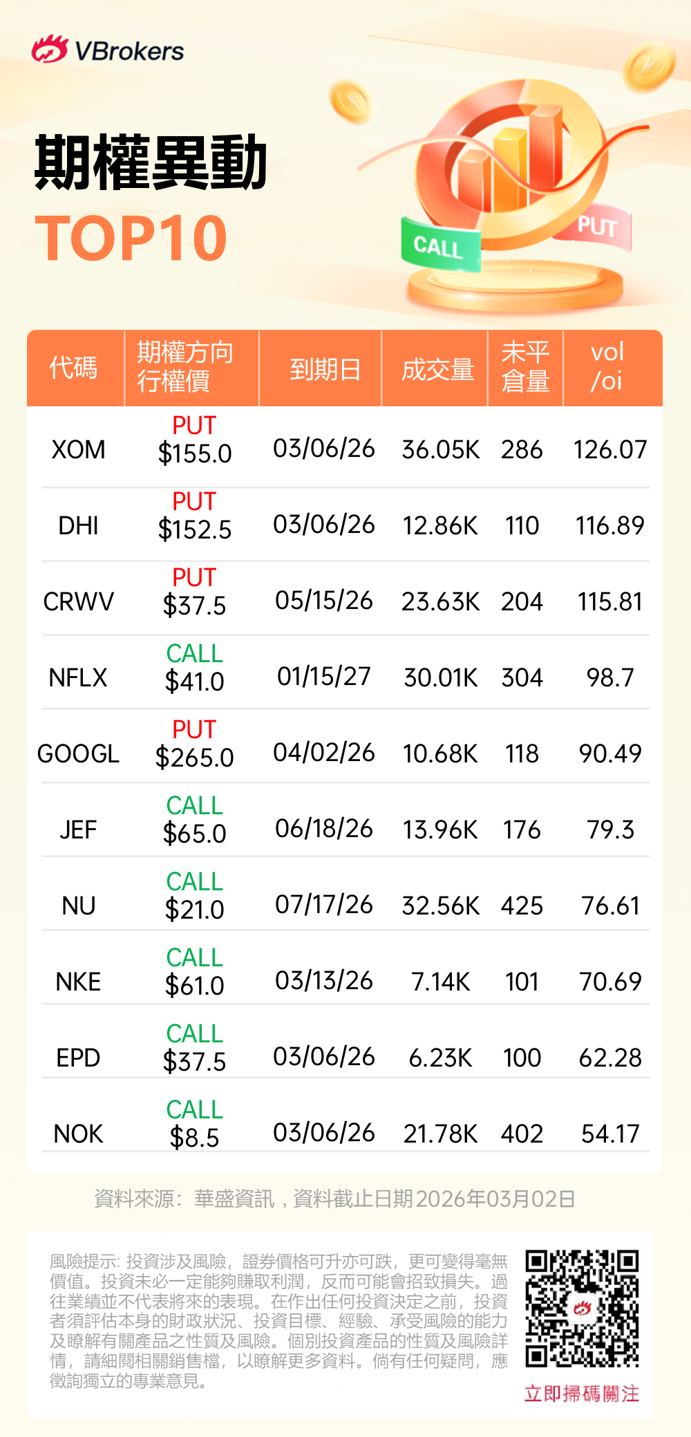 Vol/OI 异动榜(2026.03.02) |