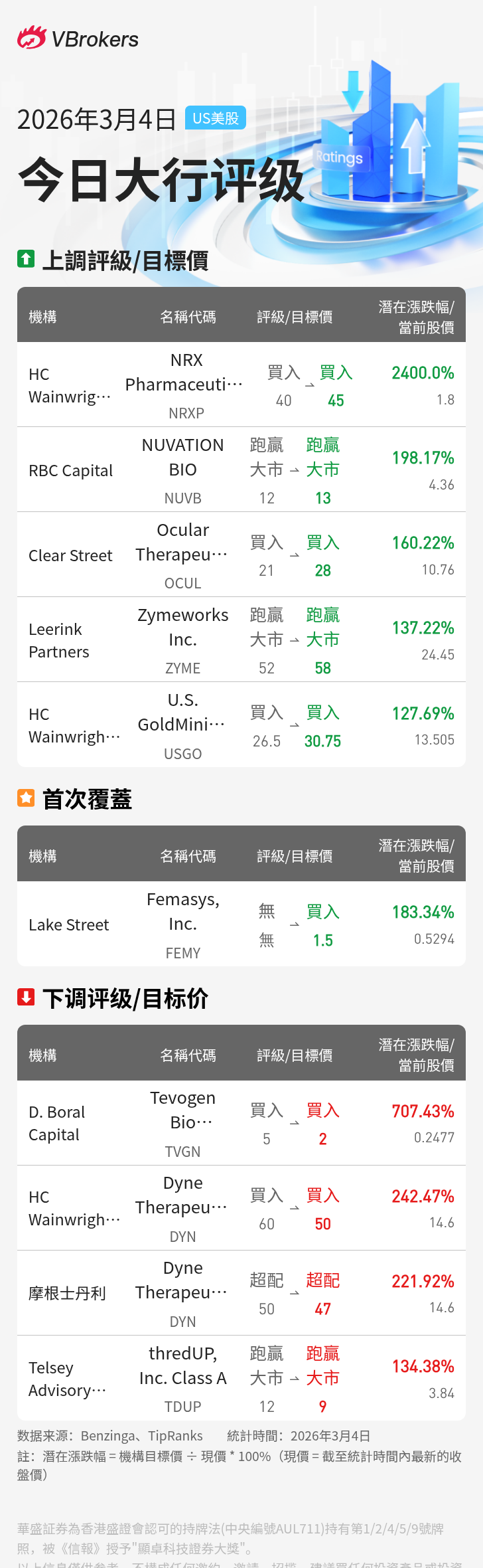编者按:每日追踪华尔街最新评级与目标价,挖掘潜力股投资机会。