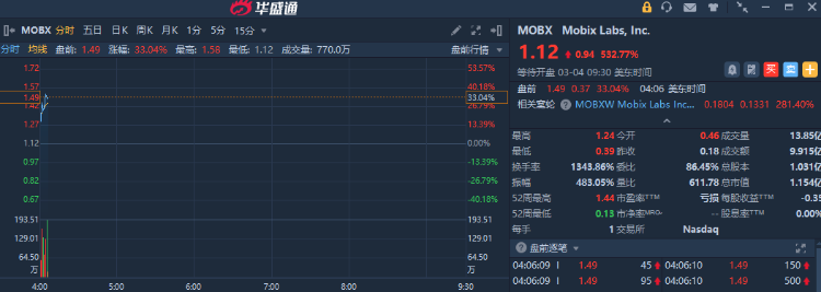 军工股MOBX $MOBX 大涨超33%,此前公司宣布收到美军战斧导弹组件生产订单。
