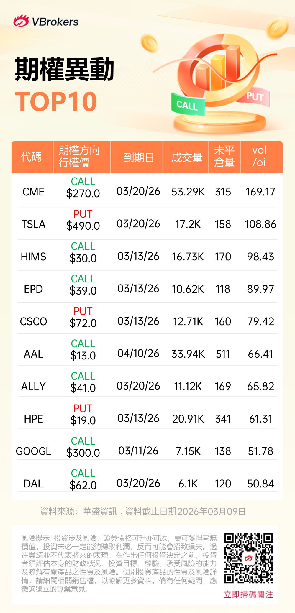 Vol/OI 异动榜(2026.03.09) |