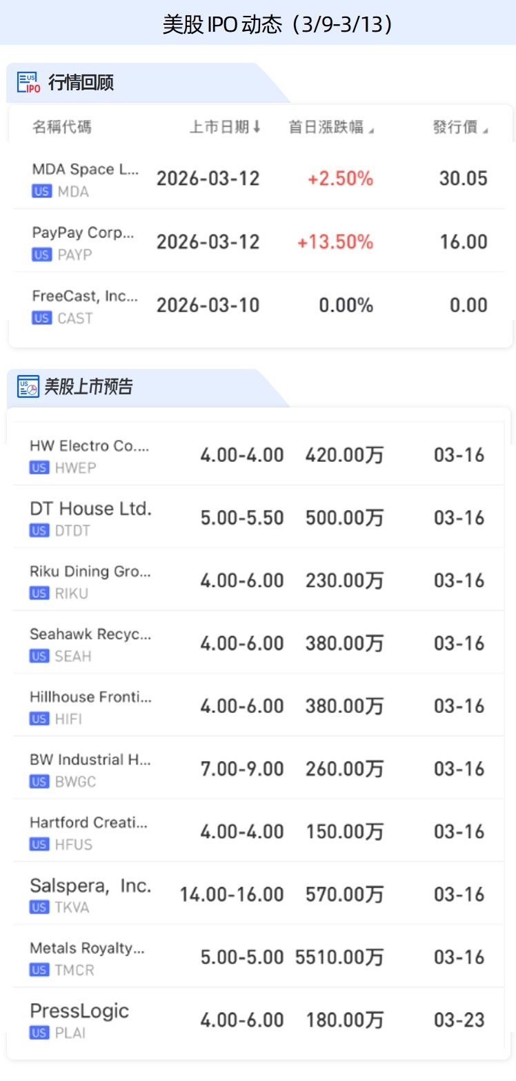 美股方面,软银旗下移动支付应用程序公司PayPay上市首日大涨14%,今日盘前再升逾35%;下周美股预计将有10只新股挂牌上市。