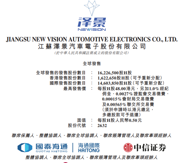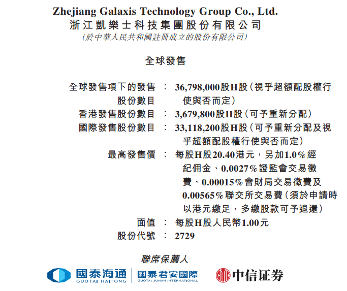 - IPO保荐人:中信证券、海通国际