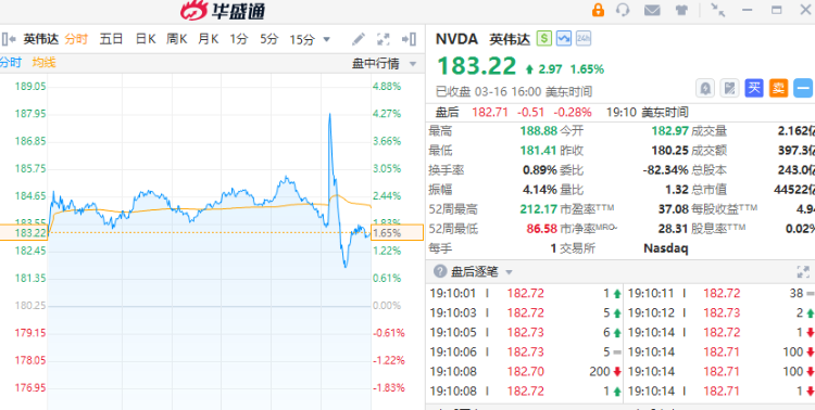 这句话也是整场演讲股民们最兴奋的时刻。英伟达股价盘中最多上涨超4%,最终收盘回落到1.6%。