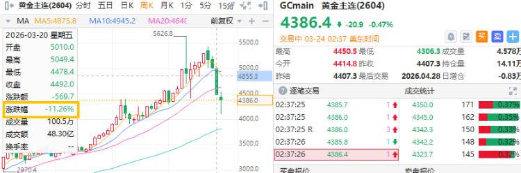 冲突爆发后的短暂冲高(3月初逼近5400美元)触发了大量获利了结,同时叠加全球股市大跌,韩国综指一度触发熔断,高杠杆融资盘面临强制平仓压力。黄金作为全球流动性最强的资产之一,成为投资者筹措保证金的首选抛售对象,形成"下跌—抛售"的负反馈循环。