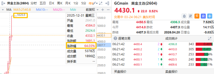 25年金价暴涨超60%,26年初一度触及5626.8美元/盎司的历史新高,市场交易拥挤度处于高位。