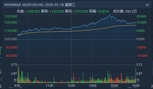 受此消息影响,两家公司当日股价短线拉升,涨幅均超2%,并带动算力、芯片、大模型等相关板块集体走强。其中,MiniMax、智谱涨幅接近20%,金山云涨超18%,天数智芯涨超13%,兆易创新涨超11%,金蝶国际涨超5%。