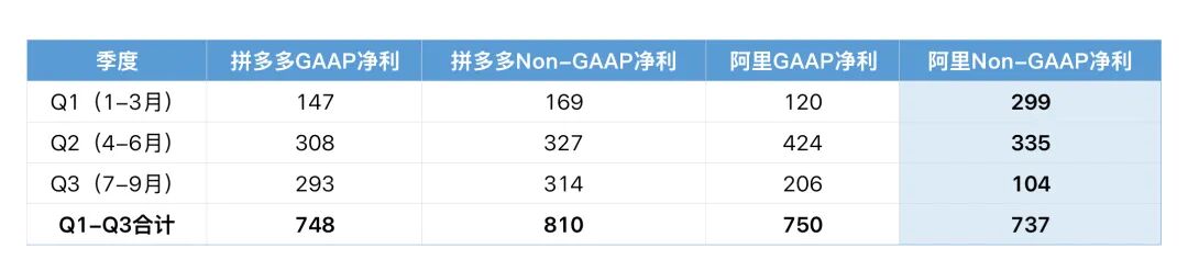 同口径对比阿里巴巴:拼多多Non-GAAP利润已经反超