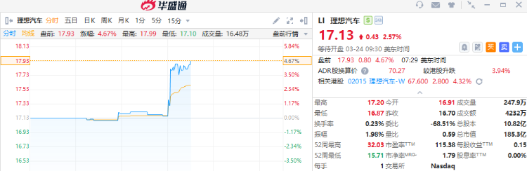 - 理想汽车盘前涨近5%,宣布10亿美元的股票回购计划