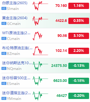 相关标的: $NQmain 、 $ESmain 、 $YMmain 、 $BZmain 、 $CLmain 、 $GCmain 、 $SImain