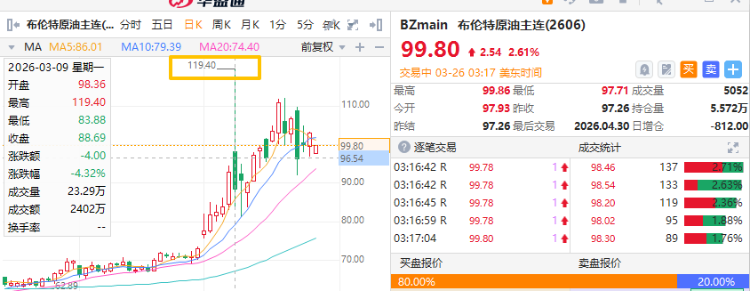 自3月初美以伊开战以来,中东局势持续升级,霍尔木兹海峡遭持续封锁。国际油价应声暴涨,布伦特原油一度暴涨至每桶119美元,全球资本市场随之震颤。
