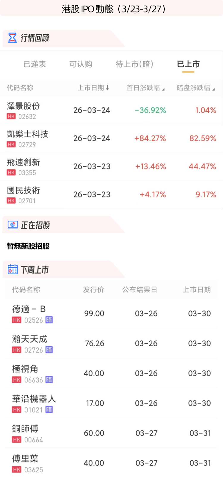 - 德适-B:超额认购1073倍,暗盘大涨100%,预计3月30日上市