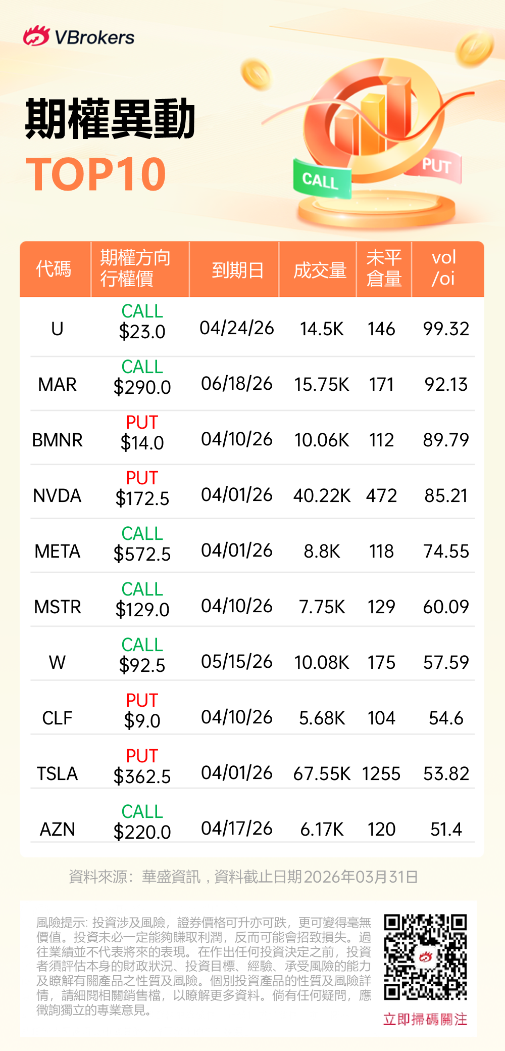 Vol/OI 异动榜(2026.03.31) |