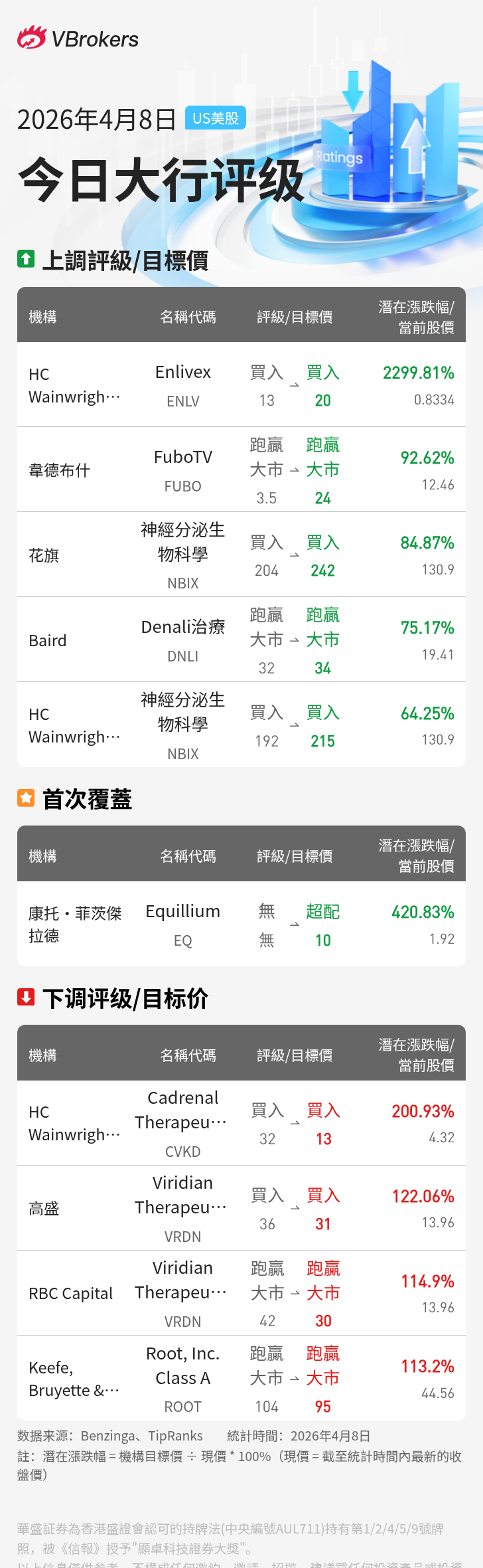 | HC Wainwright & Co. | Enlivex | ENLV | $0.8334 | 上调 | $20.0 | 2299.81% |