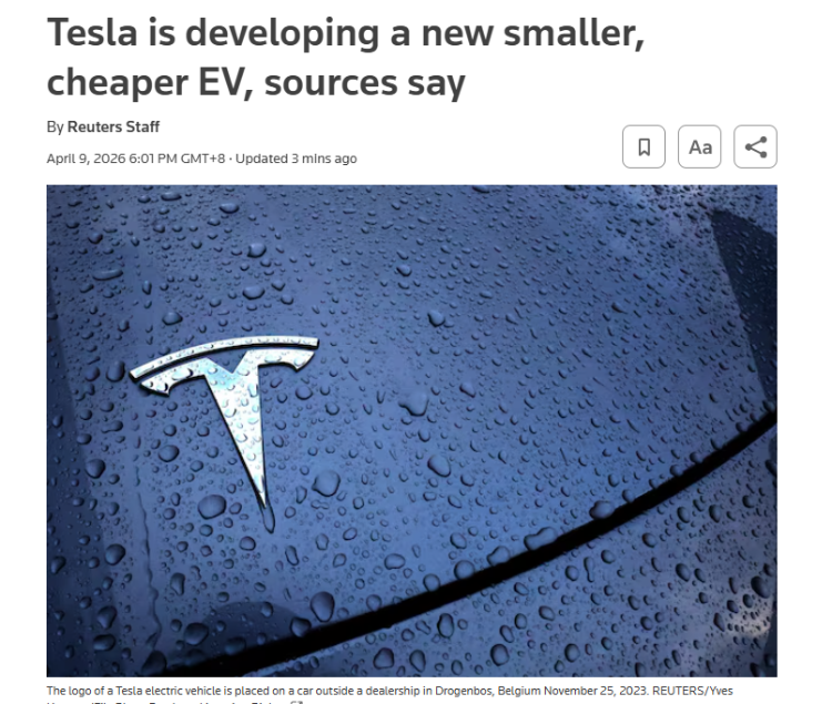 - 特斯拉:计划在中国生产全新小型、平价电动SUV
