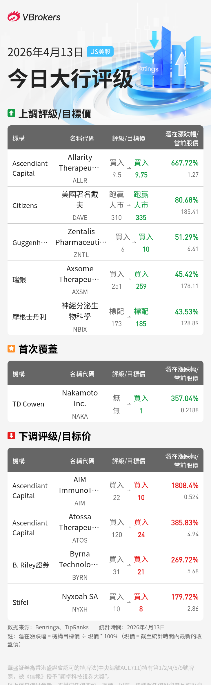 | Ascendiant Capital | Allarity Therapeutics, Inc. | ALLR | $1.27 | 上调 | $9.75 | 667.72% |