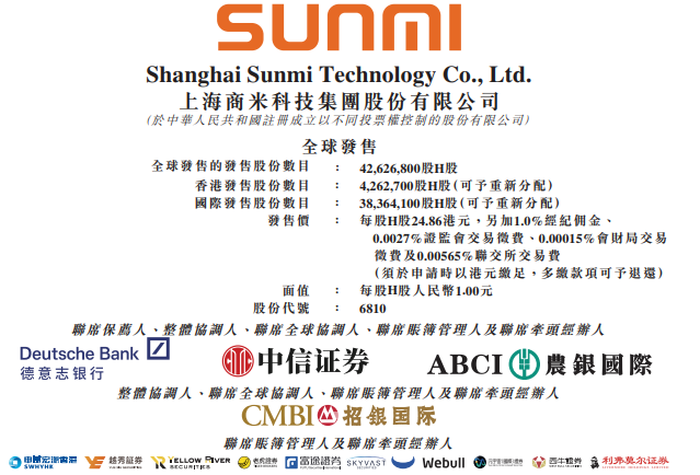 - IPO保荐人:德意志银行、中信证券、农银国际