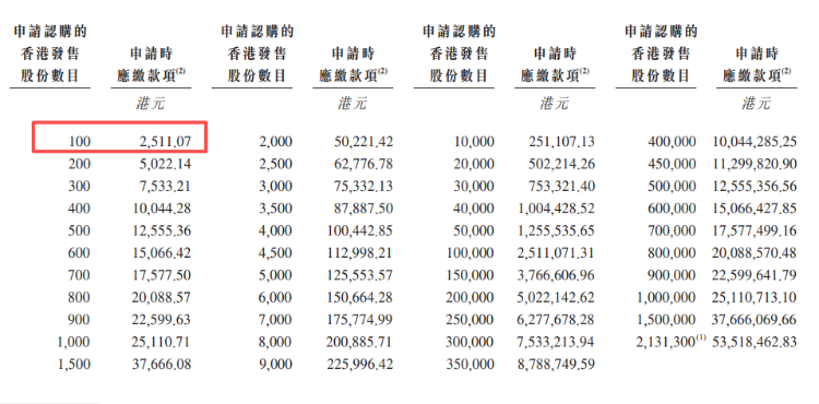 - 发售价格:发售价24.86港元,每手100股,一手入场费2,511.07港元