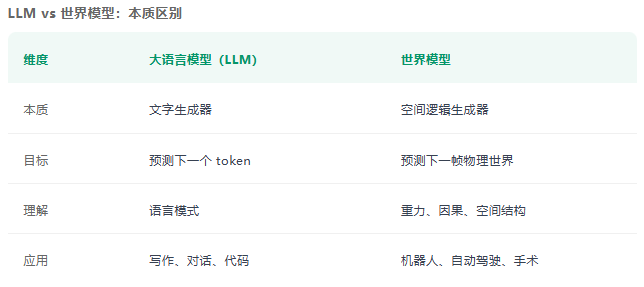 值得注意的是,世界模型与传统的大语言模型(LLM)有很大不同,传统的大语言本质仅是文字生成器,其应用场景也多为写作、日常问答、编程等传统方向。但世界模型的本质则是空间逻辑生成器,其目标为“预测”下一帧物理世界,未来或在机器人、自动驾驶、手术、游戏场景创作等复杂场景中创造巨大商业价值。