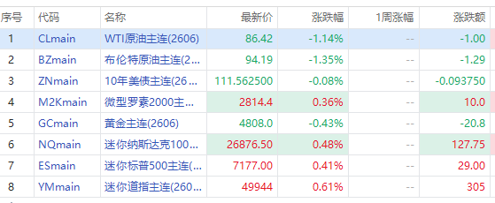 美股三大期指周二盘前齐涨,纳指期货 $NQmain 涨0.48%,道指期货 $YMmain 涨0.61%,标普500期货 $ESmain 涨0.41%。