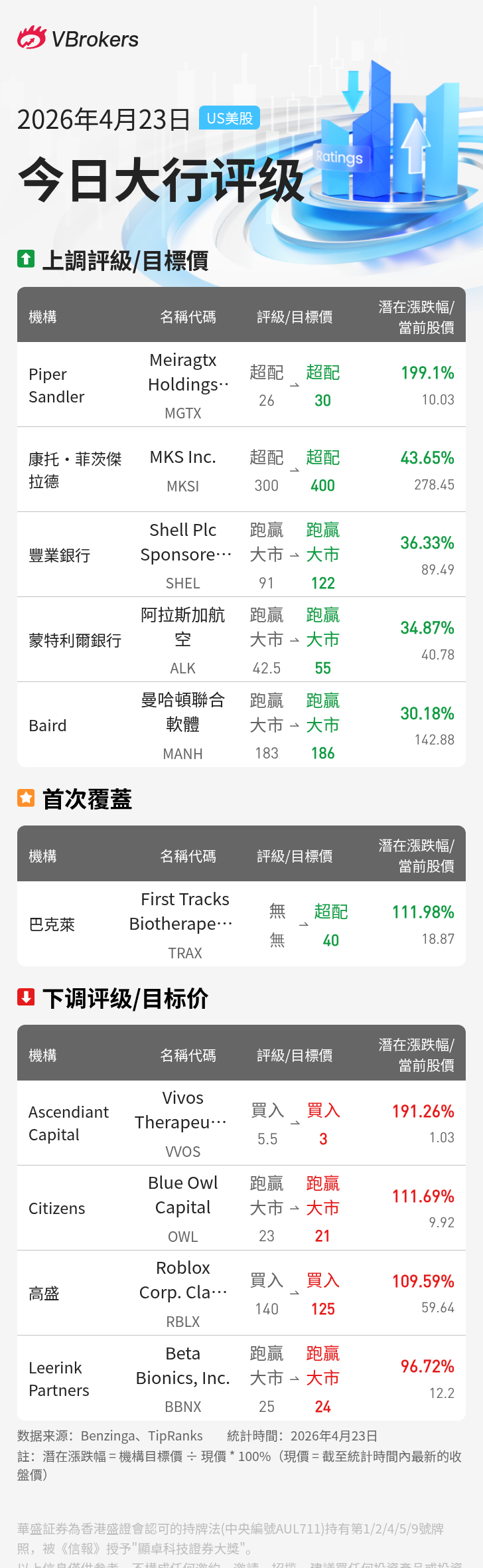编者按:每日追踪华尔街最新评级与目标价,挖掘潜力股投资机会。