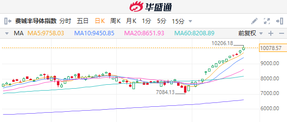 半导体板块再度走强,费城半导体指数上涨1.7%,创下连续上涨17个交易日的历史纪录。德州仪器是周四芯片板块上涨的核心驱动力,该公司大涨19.43%,创2000年10月以来最大单日涨幅,因其对第二季度营收和利润的预测超出华尔街预期。