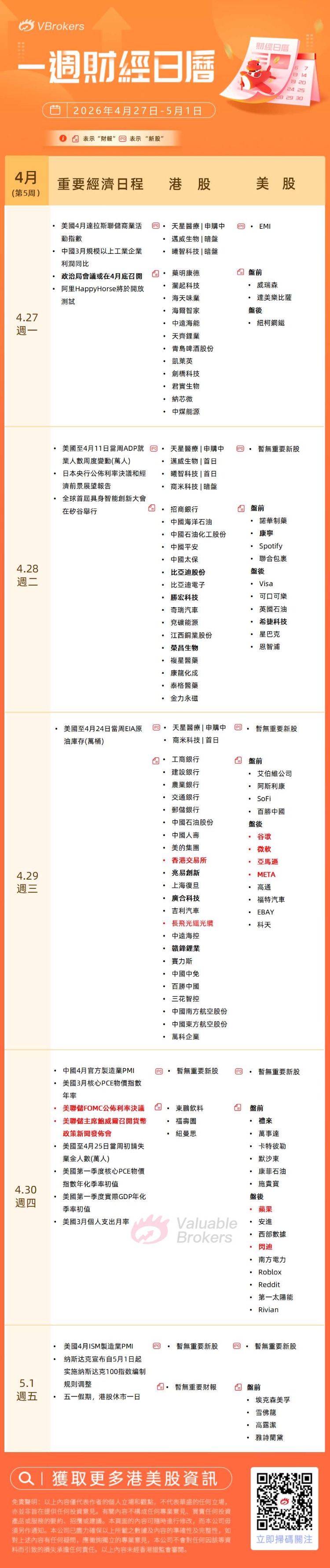 港股方面 周一(4.27):