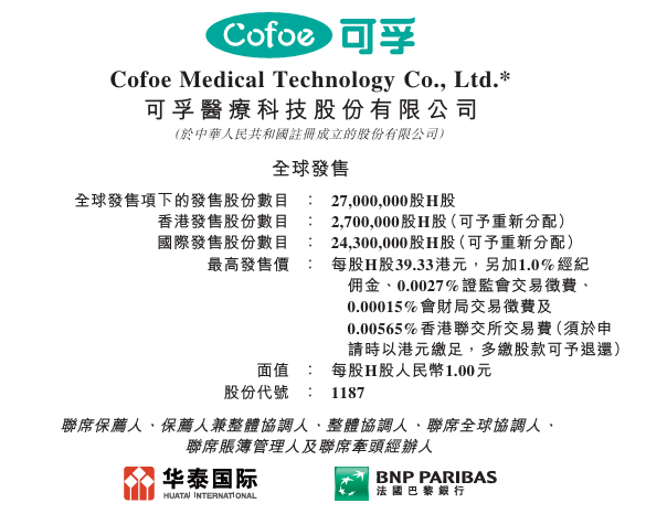 - IPO保荐人:华泰国际、法国巴黎银行