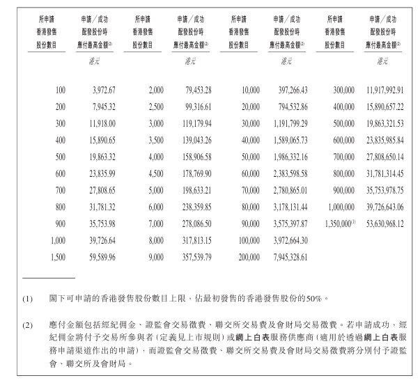 - 发售价格:每股发售价将不超过39.33港元,每手100股,一手入场费3972.67港元