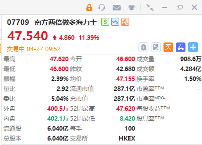 华盛资讯4月27日讯,港股半导体股盘初多数走强,韩国综合指数首次站上6600点创历史新高,南方两倍做多海力士、 南方两倍做多三星分别涨逾11%,3%;